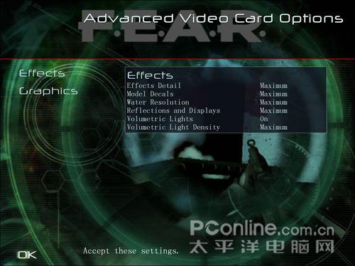 我们将游戏的特效全部开至最高,同时关闭AA/AF。