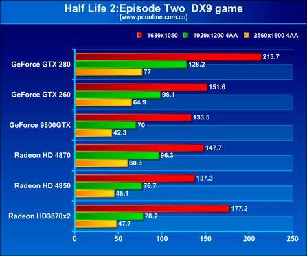 在半条命2:第二章的测试中,HD 4870基本上与对手GTX 260平分秋色。