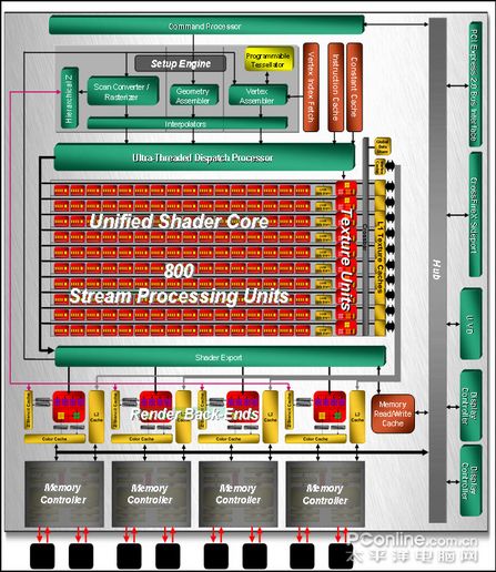 4、重新优化过架构的Render Back Ends:在架构上做了相关的优化,优化了RV770在AA特效下的性能表现。
