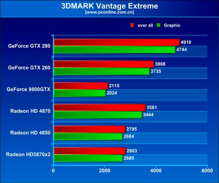 在3DMark Vantage的测试中,Radeon HD 4870的成绩落后于Geforce GTX 260。