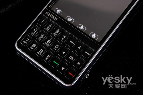 乍看金立A10键盘有点索爱M600的味道,不过金立A10并不是QWERTY键盘,而是将五向导航键以数字键的模式放置在键区的右侧,由“*”,“0”,“#”三键将其与数字键从中间隔开。水晶键盘在实际操作中具有很不错的手感,反馈力适中,只是键盘的材质有点硬。由于金立案A10在键盘的设置上有别于其他类型的手机,所以对于用户来说来需要时间适应其操作。