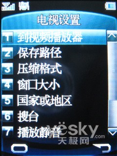 拉出手机下面的电视天线,横握屏幕,手机俨然已经变成了一款便携电视。初次打开模拟电视功能,手机会自动搜索频道。评测人员在深圳的评测室内可以收到7个台,相信在开放的环境里应该可以搜到的更多。由于信号的原因,搜到的几个台中,清晰度相差比较大,有的相当清晰,有的则干扰较大,看来就目前的设备来说,想要搜索到所有上星的电视台和清楚的观看电视节目,还是有一定设备上的的限制。