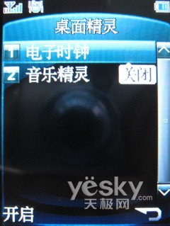 在金立A10待机画面上有电子时钟和音乐播放器的小界面,手机的“桌面精灵”可以让那个用户可以通过手指轻触然后拖到屏幕的任何位置,有点类似PC上的鼠标拖拽,这一功能在九宫格待机界面上也能通过触摸实现滑动操作。单击屏幕空白处在屏幕下方会出现四个下拉菜单,将手机内置的功能归类。虽然从屏幕下方那标志性的图标可以看出,A10是一款MTK平台手机,但是在之前的手机中,还没有哪款手机的菜单会有这般华丽的设计,可见金立A10在创新方面下了不少功夫。