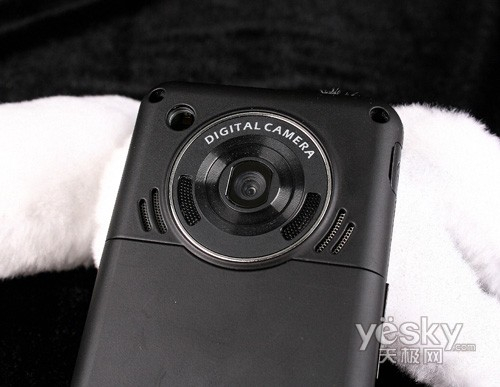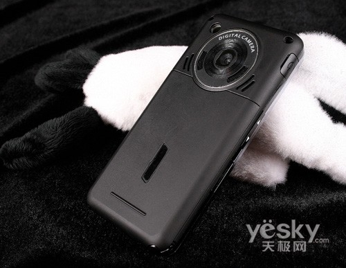 背部的设计同样以简约为主,200万像素的摄像头是在背面唯一的和主体风格不一样的设计。摄像头四周用打磨过的塑料螺旋纹装饰,在光照下有金属质感,个性十足。摄像头两侧是金立A10手机的立体声扬声器,左右各有三个发声孔,发声洪亮高亢是它们最大的特点。金立还提供了多种音效的选择:均衡器,回响音效和立体环场音效。用户完全可以根据自己的喜好将金立A10的音效调节到适合自己的模式。