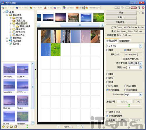 提起证件打印,大家肯定不会陌生。要是搁在几年前,这也是一门可以拿来和旁人炫耀的功夫呢。然而,随着光影魔术手、PhotoScape等一大批傻瓜型照片处理软件的面世,这项功夫早就失去了它原有的神秘。事实上,在PhotoScape的“印刷”标签下,我们只要首先通过右侧窗格,设定好待打印证件照的版式。然后,再通过左侧窗格,挑选出待打印的图片照片。最终,使用鼠标将其拖拽至中间窗格,这些照片便会自动根据版式排列。而当我们使用鼠标,右击预览图片时,更可以轻松地改变每张图片的外观,使用起来十分顺手,如图8所示。