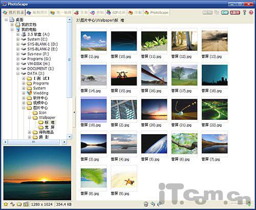 和ACDSee一样,PhotoScape其实也是一款出色的照片浏览软件。当我们打开PhotoScape的主界面,进入“照片目录”标签下时。软件便开始以缩略图的方式,显示出文件夹中的图片。而在这个窗口中,您除了可以像在ACDSee中那样,快速完成图片的全屏观看、无损旋转、幻灯播放等等功能。还可以通过右击鼠标,轻松地将指定图片设置成为桌面壁纸,如图2所示。