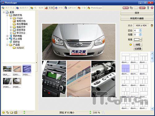 在日常工作中,有些朋友可能经常需要,使用Photoshop制作产品宣传图。虽说,这样的图片难度不大,但繁琐的对位,却要花费掉不少时间。而在PhotoScape中,您只要首先切换到“页面”标签。通过右侧窗格,挑选好满意的图片布局。然后,再打开左侧的图片选区,定位到准备好的产品图片。最终,将其分别拖拽到合适的版图中即可,如图5所示。