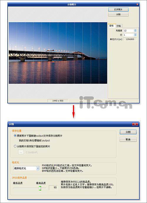 为了追求某种艺术效果,我们常常需要将一张图片,分割保存。而和产品宣传图一样,这实际上也是一项十分“麻烦”的工作。其实,在PhotoScape中,我们只要点击主界面中的“分割照片”图标,就能通过弹出窗口,自由地设定图片的分割行列。而后,再点击“分割”按钮,分割操作即可完成。至于分割后的小图,便会以单文件的方式,自动保存到指定文件夹中了,如图6所示。