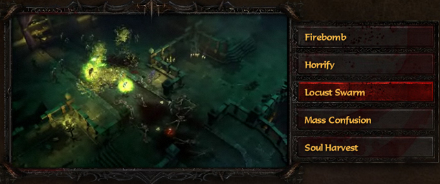 虫群攻击 LocustSwarm 向面前3个敌人施放虫群,目标敌人死去后虫群会以传染的效果感染周围敌人。