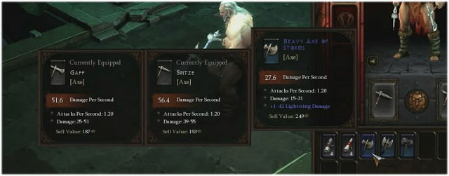 宣传片中的武器系统看起来结合了《暗黑破坏神2》和《魔兽世界》的设定,有攻击上下限和秒伤,另外可以看到武器有后缀,比如在演示里两把武器,OF STORM加的是1-42的闪电伤害,OF FROST加25-27冰冷伤害,OF IMMOLATION就是火焰伤害,而且有附魔效果。