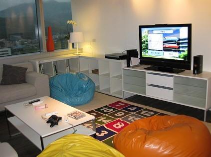 游戏区似乎快成为高科技业办公室必备的区域了,而Wii、PS3,乃至华硕自家生产的家庭计算机,自然也是游戏室的基本配备。