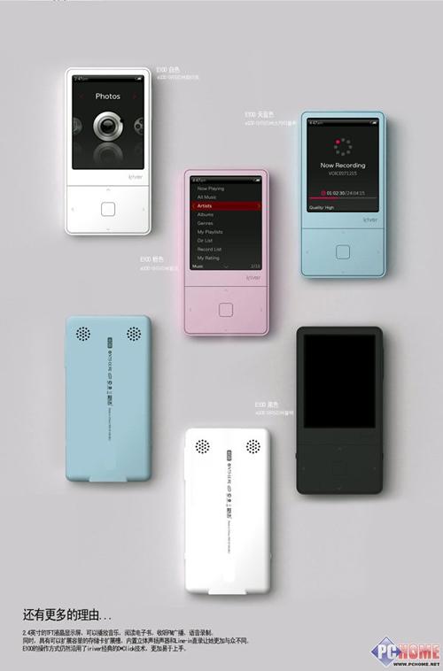 随着iriver E100在世界范围内的陆续上市,中国市场也将迎来这位“仙子”。E100共有纯白、雅黑、天蓝、佳人粉和巧克力五款颜色选择,无论男女、不分年龄,都能寻找到适合自己个性的颜色,而且根据目前Mplayer的视觉表现力来看,兴许E100在不久后也会发布更多的颜色款式呢。