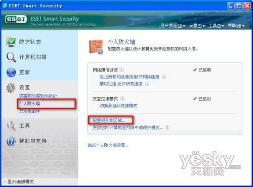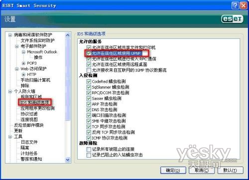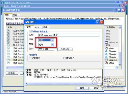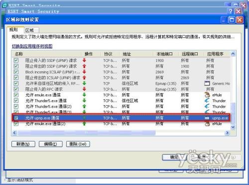 我们从规则于区域窗口中,可以看到,ESET NOD32安全套装已经允许了UPNP的通信。
