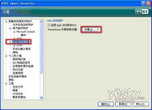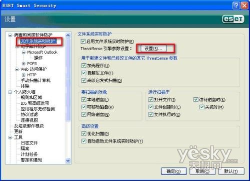 点击右边的”ThreatSense引擎参数设置”的设置按钮,如下图: