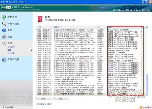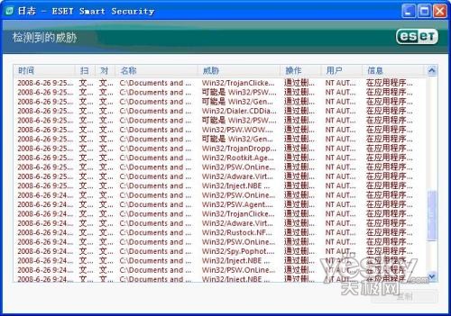 挖,很多病毒啊,呵呵,看来ESET NOD32安全套装果然名副其实,竟然阻止了这么多病毒。