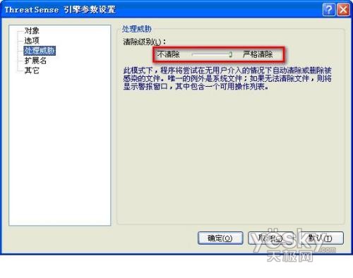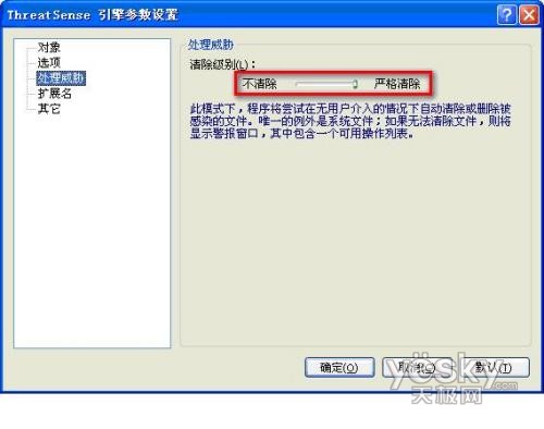 设置为”严格清除”,这样可以实现自动处理病毒: