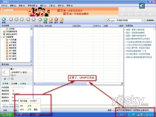 打开迅雷,可以看到,UPNP的按钮已经变成了绿色,ESET NOD32安全套装完美支持UPNP。
