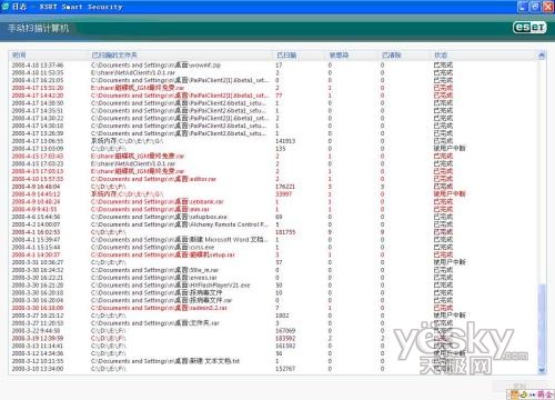 一大堆红色的病毒被扫描出来了,ESET NOD32 安全套装果然厉害。