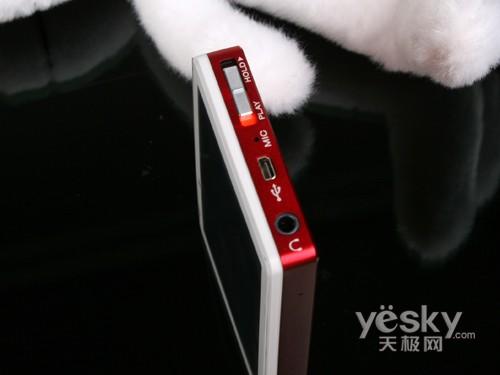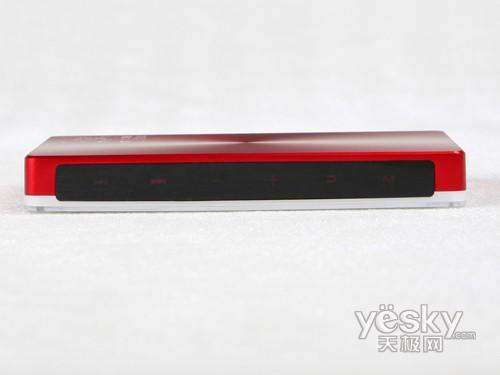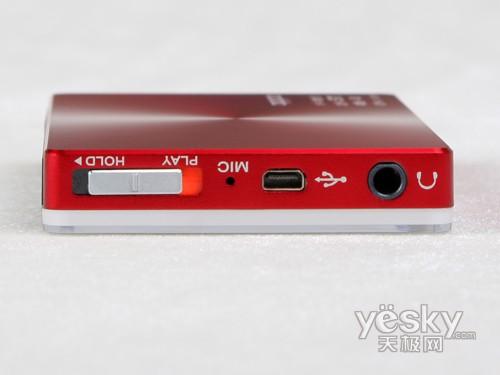 S7采用当下时尚主流的感应式按键,六个“一触即红”感应按键均分布在机器顶端,依次为:快进、快退键、音量—、音量+、菜单返回键和M键,散发出科技的独特魅力。略显不足的是,上述按键在进入子菜单后分别有多个不同的功能,比较复杂,新入门的用户得花点耐心记忆,不过小编认为用熟练之后就得心应手了。机身的侧面则分布着“Hold”、“Play”、MIC孔、USB接口和耳塞插孔,而左侧仅分布了一个螺旋式的挂绳孔。整体来看,按键分布干脆简洁,使整个机器更加清爽迷人。