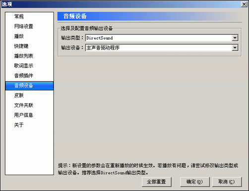 1、点击酷狗音乐2008的"菜单设置"-"选项"-"音频插件"设置即可,如图6所示