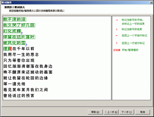 另外,制作动感歌词也是一个很享受的过程--目前已有上万网友制作了动感歌词,你不但可以在歌词中添加自己的个性签名,还可以为别人制作的歌词评星级,星级越高的歌词,显示的次数将越多。制作过程如图8所示: