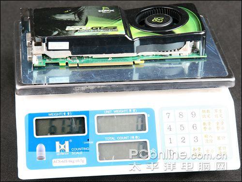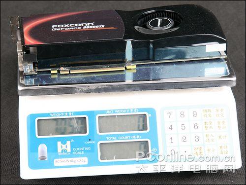 重量上GeForce 9800GX2显卡打破HD3870x2显卡的记录,重量直接跳升至1176克,相当于一个小型的机箱。