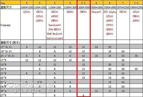 但根本性的差异在于这些面板厂启用6代线、7代线甚至7.5代线切割22英寸宽屏LCD,而这些生产线切割热门的22寸宽屏并不符合厂商的利益。所以,在这种背景环境下,其它液晶面板厂商开始考虑切割符合自己的经济切割尺寸,于是,切割其他液晶面板成为众多拥有六代线液晶面板厂商经济切割的新选择。
