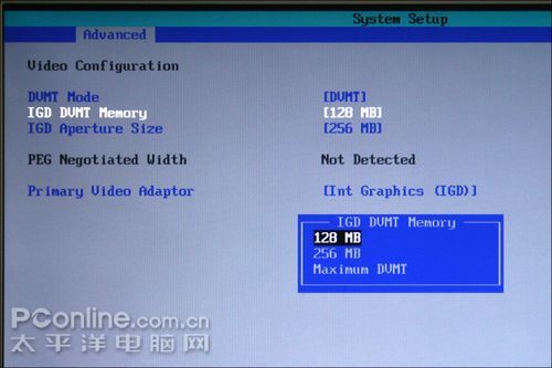 在IGD Aperture Size(缝隙尺寸)选项上,我们选择默认的256M。