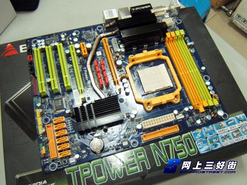 映泰 TPower N750主板仍然保留了映泰T系列主板一贯的蓝色PCB,全尺寸ATX版型设计,基于NVIDIDA的nForce750a SLI芯片组,支持AM2+/AM2接口的全部处理器,支持HT3.0总线,同时主板内建GF8系列显示核心,全面支持DX10、Hybrid SLI以及Hybrid Power技术。