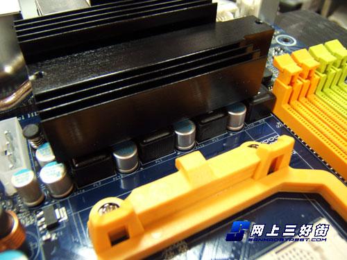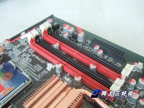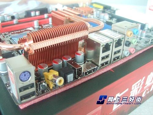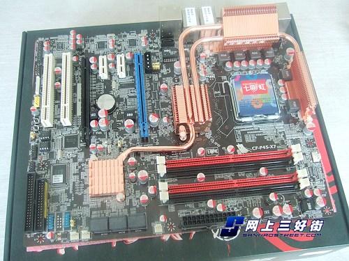 供电部分七彩虹C.P45 X7主板可以说是非常扎实,豪华的六相回路在用料方面非常讲究。而且MOS也被散热片所覆盖,并且通过热管连接到了南北两桥,对于散热以及超频提供了绝佳的辅助。