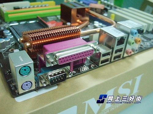 I/O方面这款主板也十分不错,PS/2鼠标键盘接口,4个USB 2.0接口,1个网络接口以及音频输入输出接口等日常使用的接口一应俱全。