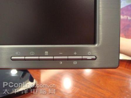 三星T220的OSD按键被设置在边框的右侧,这样的设计能不破坏屏幕自身的协调,保证了色彩的连贯性与前面板的整体感,让优秀的水晶外观发挥得更好。