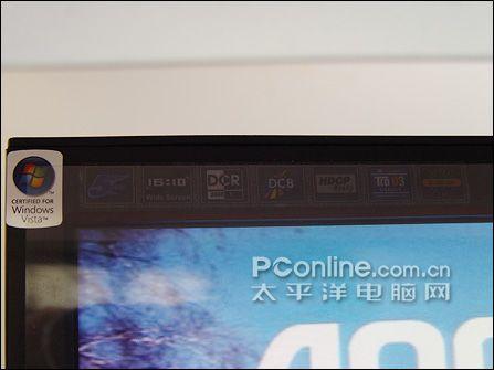 四条边框都做了倾斜处理,这使其看起来丝毫不显得“臃肿”,而且也活泼了些许。四个边角上,除了产品Logo之外。瀚视奇也点出其支持能源之星,微软Vista认证以及HDMI高清视频接入这些主要特性。
