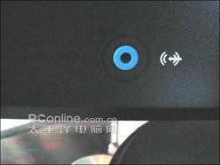 圆形的电源按钮巧妙的内嵌在屏幕下边框中间位置,配上淡绿色的指示灯光,其他OSD按键全部采用隐藏式设计。