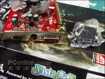 最新到货的狂镭HD3650钻石版已经采用原生HDMI作为标准接口,结合显卡对HDCP的支持,以及内置的5.1声道声卡,通过一根HDMI数据项就能够非常方便的与各种高清显示设备连接,输出高质量的数字影音信号。除了HDMI,DVI/TV-out一个不缺,附件中还提供DVI-VGA转接头,应对不同的输出连接需要。