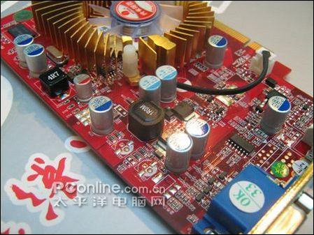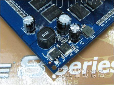 影驰 8600GT TC512MB战斗版采用核心/显存分离独立式供电模块设计,显示核心占用一相,显存占用一相,选料采用了电解电容以及全封闭电感,保证显卡工作稳定。