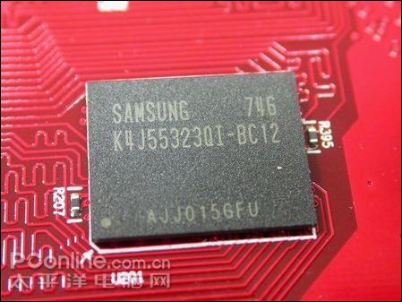 显存部分,搭载了三星1.2ns GDDR3显存颗粒,正面8颗组成256MB/256bit的显存规格,默认核心/显存频率为670MHz/1660MHz,参照公版HD3850显卡进行设计,由于核心内建320个流处理单元,性能突出。