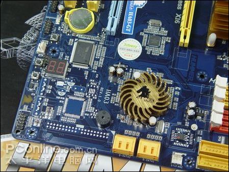 悍马HA03-GT主板南桥芯片为SB600,可支持1个IDE接口以及4个SATA2接口,支持RAID 0/1/0+1/5磁盘阵列模式。同时悍马HAO3-GT主板取消了HAO3的第三方磁盘芯片。蜂鸣器,DEBUG灯,POWER和RESET也按键一应俱全。