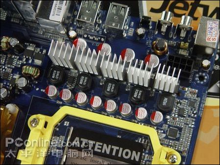 电容方面,该款主板采用了豪华的5相供电,为全封闭式电感和全部固态电容设计。MOS管上方设计有散热片,能提供很好的散热能力,超频性能值得期待。