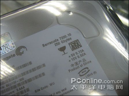 这款希捷250G硬盘,属于7200.10系列,型号为ST3250310AS,单碟250G,所以显得轻薄了不少。它为联强代理,质保5年。