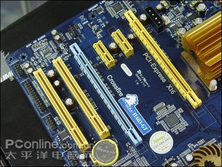 悍马HA03-GT主板可提供一个PCI-E x16显卡插槽,支持PCI-E 2.0规格的显卡。由于两个PCI -E插槽将均分x16的带宽,所以当运行一张显卡时使用Swith Card屏蔽另外一个插槽的x8带宽 。主板同时提供2个PCI和PCI-E x1插槽,支持更多扩展设备。