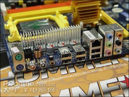 接口方面,悍马HA03提供6个USB接口,C CMOS按键。声网卡接口。另外,主板还提供了FinTek(台湾精拓)F71883FG I/O控制器和ALC883音效芯片,用于对主板硬件 的电压监测、温度监测和风扇转速的监测,音效芯片可以提供8声道HD音频输出。