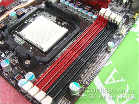磐正超磐手 AK790 GTR提供4条240引脚1.8V内存插槽,支持双通道DDR2 1066/800/667MHz内存规格,支持最高容量为16GB。