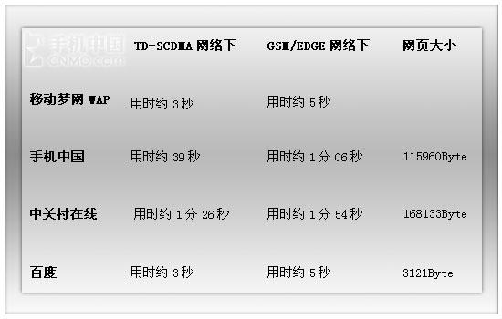 结合中兴U980手机,我们对目前TD-SCDMA网络状况进行了相关测试。测试的环境为室内,信号状况为三格左右,测试项目是在TD网络下的浏览网页速度。在U980内置的Opera下,我们进行了WAP网页、WEB网页的打开测试,并与EDGE网络下的相同操作进行对比。总体上讲,目前的TD网络要较试商用刚启动时有了明显的提升,信号强度已经能够使用户在室内完成绝大部分3G应用。
