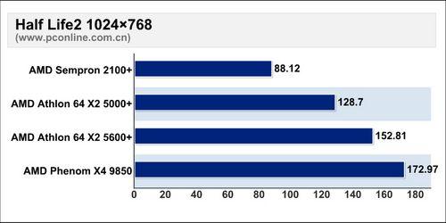 DOOM3和Half2在多核心优化上已经所有改进,虽然是比较老的游戏,但是对与双核闪龙仍然可以应付的游刃有余。因此在3D性能,双核闪龙即使同四核羿龙相比也不会落后几倍,相比价格差距而言算是非常不错的成绩了。