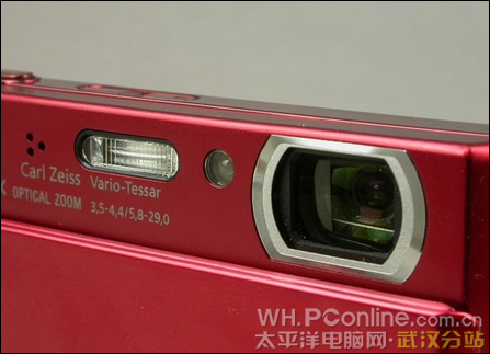 T300秉承了索尼T系列的经典造型,纤薄的机身采用了时尚的设计,前面镜头滑盖换成了双折叠式开闭.这两段式滑盖设计是T300外观最大的亮点。参数方面,T300采用了一块1/2.3英寸CCD感光元件,有效像素高达1010万,最大分辨率为3648X2736。T300配置了5倍光学变焦的卡尔蔡司潜望式镜头,等效焦距为33-165mm,最大光圈F3.5-4.4,支持Super SteadyShot光学防抖技术。