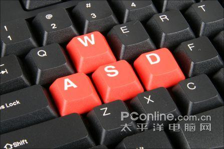 在这个键盘的游戏优化方面,我们能够看到其只是把W、A、S、D四个按键涂成了红色,上下左右键则没有这个优化处理。其实笔者认为,上下左右键的优化本身是意义不大的,除了几个一般热门的网络游戏外,上下左右键的用途本身并不大,特别对于FPS游戏来说,用上下左右键操作的也就只可能是新手了。