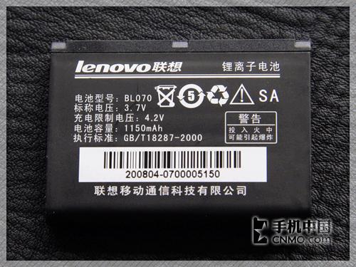 联想ET880手机随机配备了一块型号为BL070的聚合物锂离子电池,其标称容量与系统实际的检测值相同,均为1150mAh。