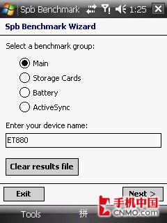 Spb Benchmark在针对具体Pocket PC主要包括3个子测试项目:CPU(中央处理器)、File system(文件系统)、Graphics(图形系统),通过这三项测试得出的综合成绩可以直观的看出一款Pocket PC智能手机的整体性能。