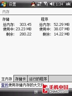 在内存方面,联想ET880手机采用了316MB ROM和64MB RAM的容量配置,依次打开“开始——设置——系统——内存”,我们就能看到ET880的可用ROM为280.22MB,可用RAM为14.22MB,稍微有点少,但内置的2GB“我的空间”完全能够弥补过来,从而满足用户对大容量存储空间的需要。